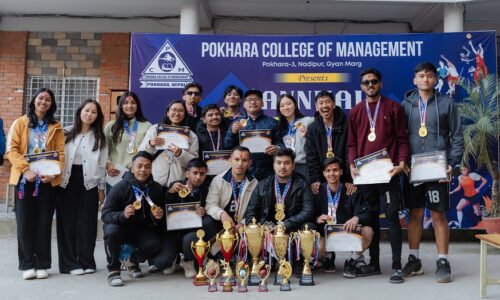 Pokhara College of Management (PCM) successfully concluded its annual sports meet, showcasing the athletic prowess and competitive spirit of its students across all semesters. The week-long event, meticulously organized by sixth-semester BBA and BCIS students, featured a diverse range of sporting competitions. The tournament included popular sports such as futsal, basketball, badminton, and table tennis,...